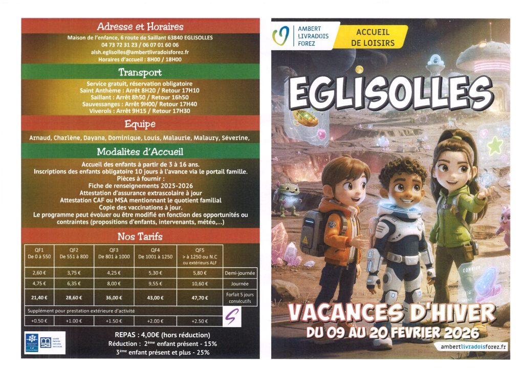 PROGRAMME DES VACANCES DE FEVRIER ALSH EGLISOLLES