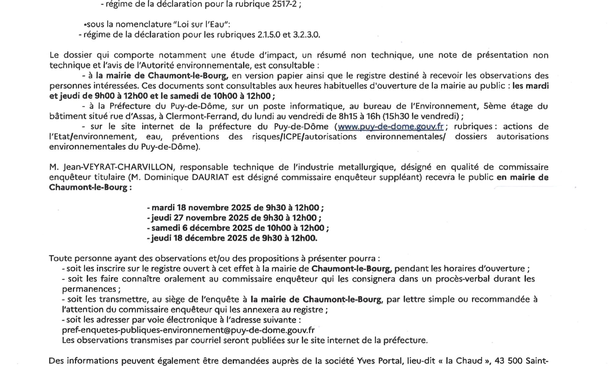 AVIS D’ENQUÊTE PUBLIQUE CARRIÈRE DU GRAND GAR