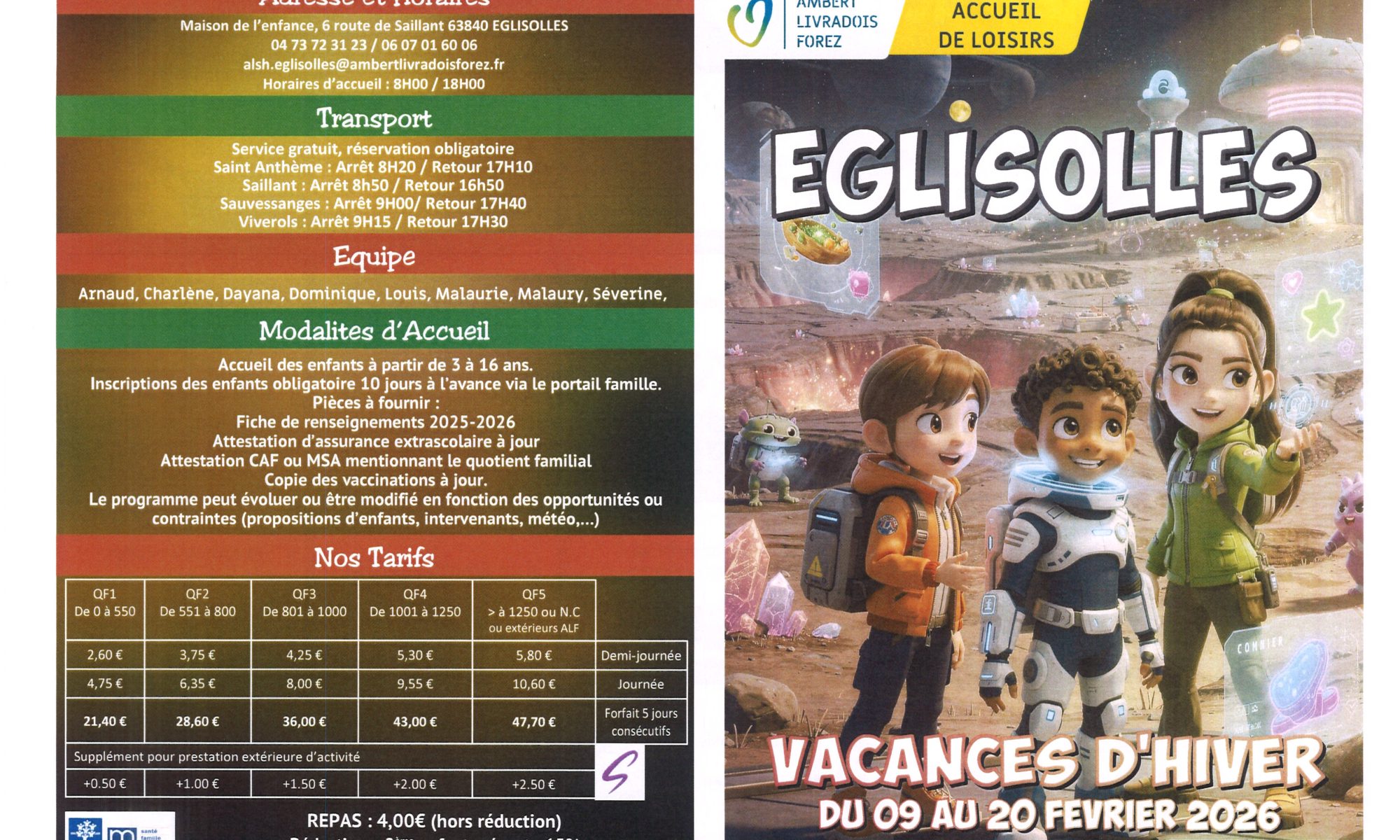 PROGRAMME DES VACANCES DE FEVRIER ALSH EGLISOLLES
